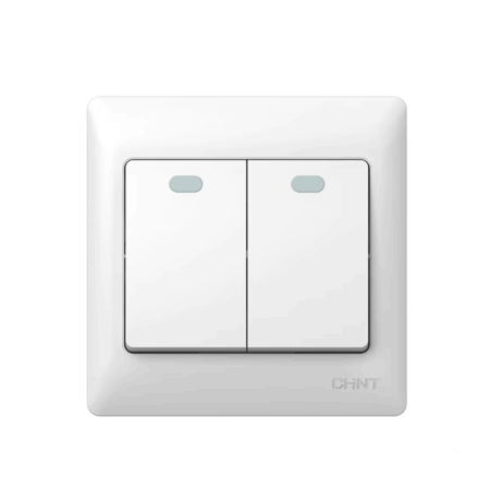Switch, 2 Gang, 1 Way, with Neon, White, CHINT