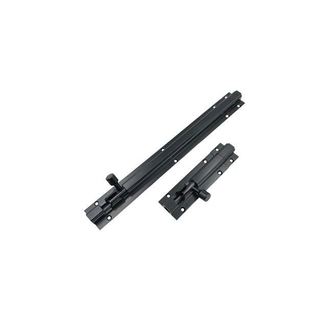 Flush Tower Bolt, 6 inch, Aluminium, with 10 inch Rod-Black