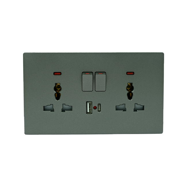 Universal Multi Socket Switch, 13A, Double, Rose Gold, FSLUniversal Multi Socket Switch, 13A, Double, with Neon, 2 USB, Grey, YAKI